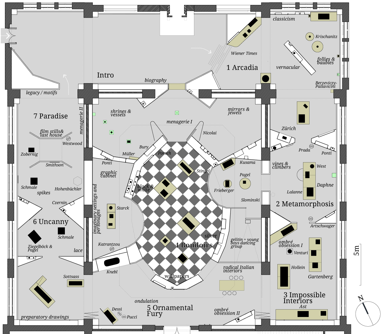 Mit Arbeiten von: Uli Aigner, Richard Artschwager, Gae Aulenti, Franz von Bayros, Aubrey Beardsley, Cecil Beaton, Artur Berger, Busby Berkeley, Friedrich von Berzeviczy-Pallavicini, Celia Birtwell, Gustav Broström, Chloé / Karl Lagerfeld, Adriana Czernin, Victoire de Castellane, Marco Dessí, Josef Frank, Pahdi Frieberger, Anton Frühauf, Gelitin & Young Boys Dancing Group, Hugo Gorge, Jean-Paul Goude, Michael Graves, Oswald Haerdtl, Fritz von Herzmanovsky-Orlando, Josef Hoffmann, Christine and Irene Hohenbüchler, Hans Hollein, Peter Hujar, Moriz Jung, Mary Katrantzou, Jakob Lena Knebl, Mela Koehler, Adolf Krischanitz, Andreas Kronthaler/Vivienne Westwood, Yayoi Kusama, Florian Ladstätter, Claude Lalanne, Steven Meisel, Alessandro Mendini, Pierre Molinier, Luis Müller, Olaf Nicolai, Ada Nigrin, Michèle Pagel, Nathalie du Pasquier, Hanns Pellar, Hans Poelzig, Gio Ponti, Johannes Porsch, Prada, Pucci, Alfred Roller, Birgit Schlarmann, Toni Schmale, Bo?ek Šípek, Andreas Slominski, Ettore Sottsass, George Sowden, Philippe Starck, Josef von Sternberg, Oskar Strnad, Robert Smithson, Rudolf Stingel, Josef Urban, Robert Venturi, Nanda Vigo, Franz West, Franz Weiner, Wiener Times, Maria Ziegelböck, Heimo Zobernig.